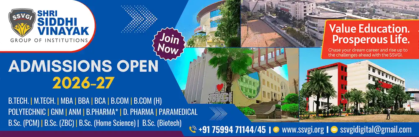 Shri Siddhi Vinayak Group of Institutions (SSVGI), Bareilly, is a premier educational hub committed to academic excellence and holistic development. With a diverse range of institutions. It is the best college in Bareilly which offers quality education in engineering, management, nursing, pharmacy, paramedical, and polytechnic studies.